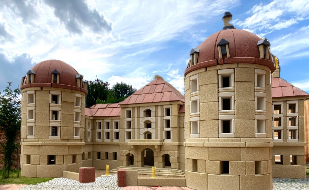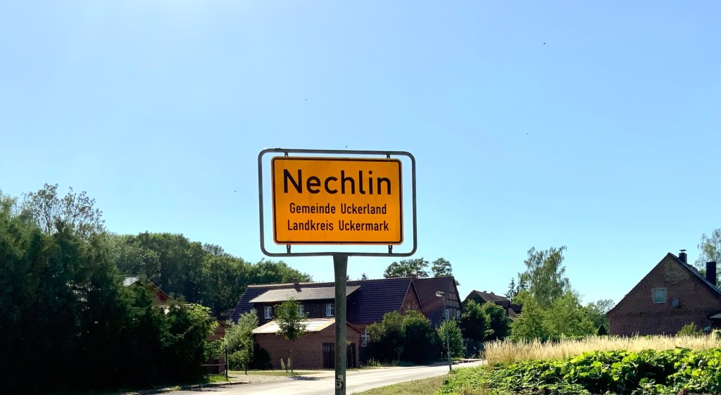 Und wer sich gefragt hat, wo denn das Schloss in Nechlin steht, welches auf der Rückseite der Einladung zu sehen ist: Hier stand es, einer seiner Erbauer im Hintergrund. Inzwischen ist an diesem Ort die Große Burg im Bau.