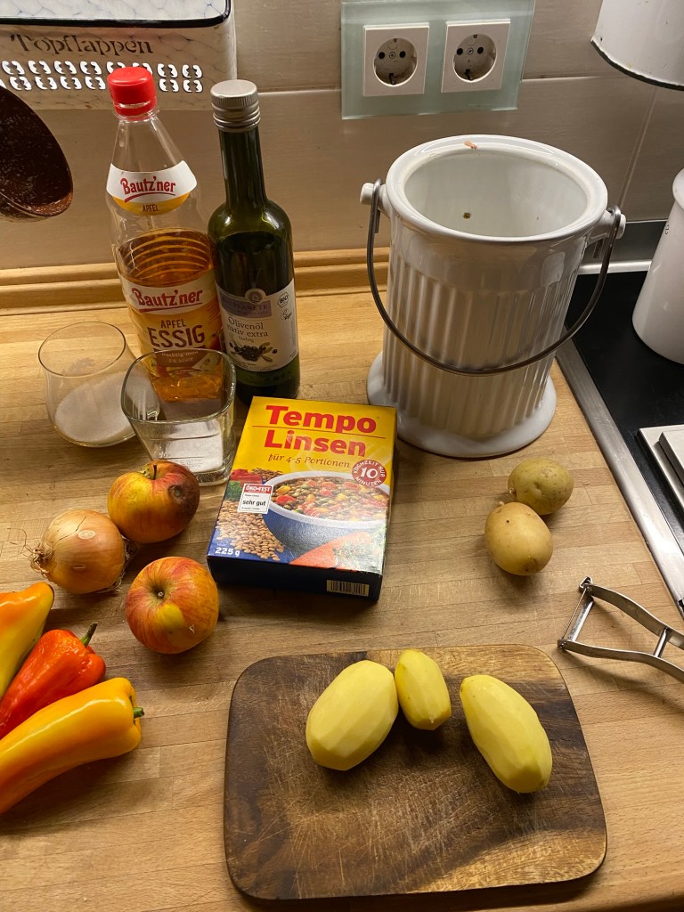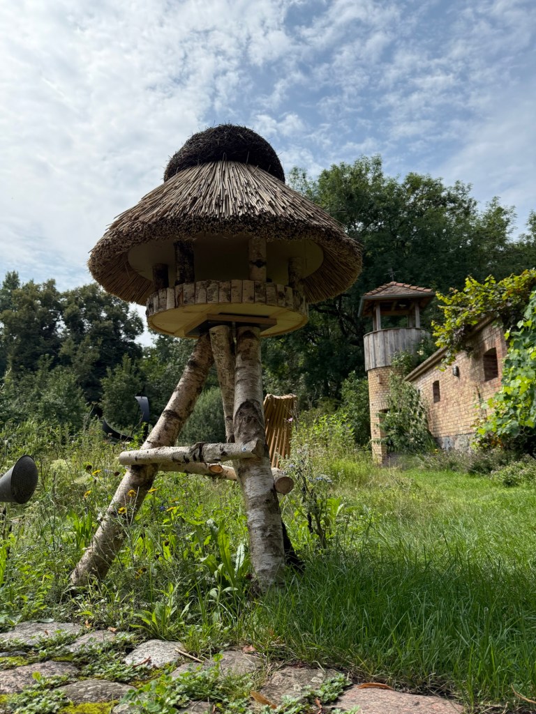 13 Uhr Mittagspause mit einem leichten Süppchen auf der Terasse hinter dem Kornspeicher (Richtung Windfeld)